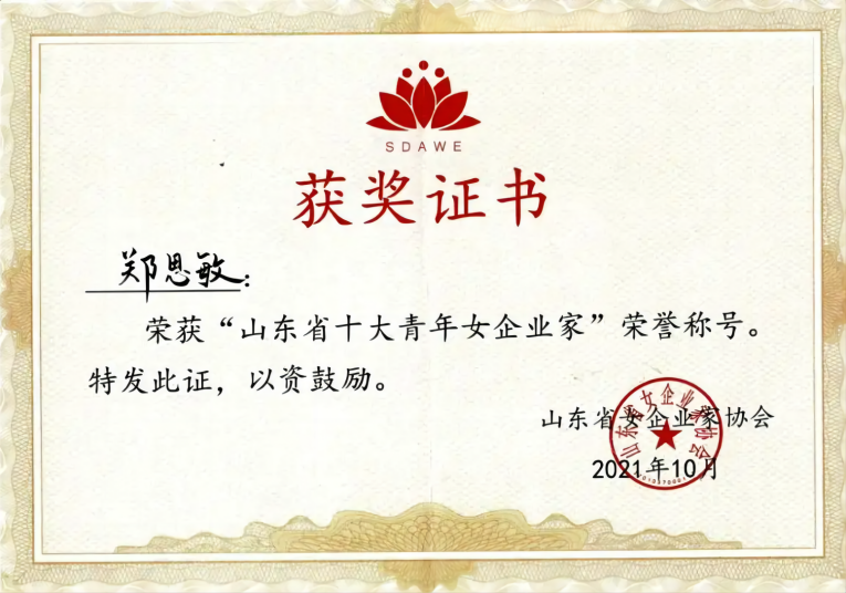 鄭思敏系友獲評“山東省十大青年女企業(yè)家”