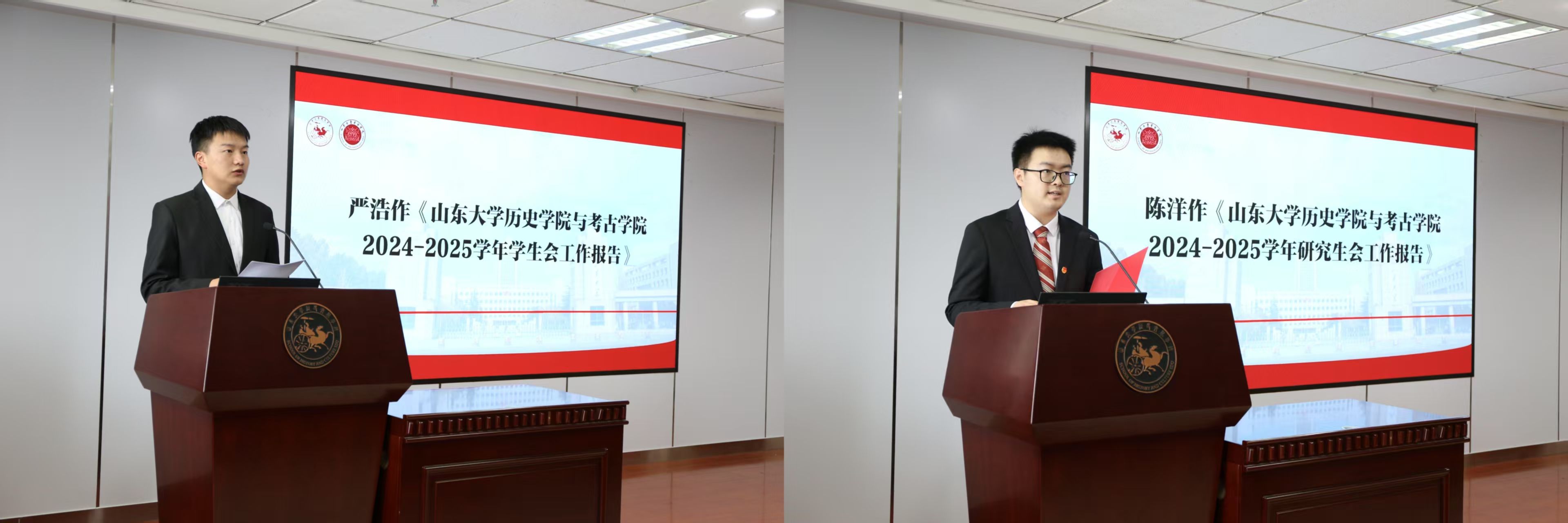 正式會議上,學院學生會負責人嚴浩、研究生會負責人陳洋分別作《歷史學院與考古學院2024-2025學年學生會工作報告》《歷史學院與考古學院2024-2025學年研究生會工作報告》,回顧和總結了學院學生組織在過去一年的工作成效。學生會權益工作負責人費俊凱、研究生會權益工作負責人黃海妍分別作2024屆院級學生會、研究生會學生發(fā)展權益工作報告,總結了一年來學院學生組織權益工作成果,提出了權益工作的未來設想與展望。