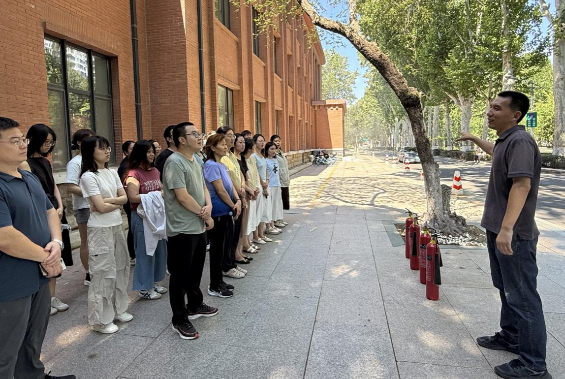 隨后,在黨委保衛(wèi)部的指導(dǎo)下,工作人員觸發(fā)消防警報,模擬實驗樓突發(fā)火情,參訓(xùn)師生在消防警報響起后立即啟動應(yīng)急預(yù)案,遵循安全標(biāo)識指引選擇最優(yōu)逃生路線,全程保持低姿匍匐快速撤離,有序疏散至室外安全集結(jié)點。集合完畢后,黨委保衛(wèi)部孫會全老師針對疏散過程中暴露的路線選擇遲疑等薄弱環(huán)節(jié)進行現(xiàn)場剖析,進一步強化安全意識,核心避險原則。之后開展消防器材實操訓(xùn)練,師生分組進行滅火器實戰(zhàn)應(yīng)用。在專業(yè)指導(dǎo)下掌握“提罐、拔銷、握管、壓柄”四步操作法,重點演練噴射距離控制、掃射角度調(diào)整及低溫金屬部件防凍傷要點,確保參訓(xùn)人員熟練掌握初期火災(zāi)撲救技能。