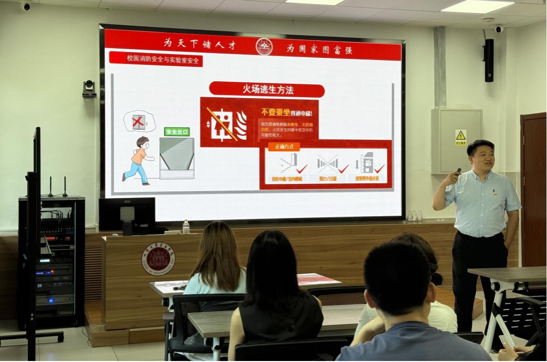 首先,黨委保衛(wèi)部韓知樂老師為師生系統(tǒng)剖析了火災(zāi)防控要點。通過校內(nèi)外典型火災(zāi)案例,深入闡釋火災(zāi)危害性、預(yù)防措施及應(yīng)急處置流程,強調(diào)消防安全責(zé)任意識與預(yù)防緊迫性。針對生活場景,重點警示室內(nèi)吸煙、電熱毯使用風(fēng)險,明確電熱毯失火可能引發(fā)樓層火災(zāi),并指出潑水降溫等應(yīng)急處置誤區(qū)。在實驗室安全管理保護方面,剖析實驗過夜、人員擅離、有機溶劑管控及通風(fēng)清潔等關(guān)鍵問題,結(jié)合某校實驗室爆炸實例,重申滅火器材配置與規(guī)范操作的必要性。在逃生技能方面,指導(dǎo)師生在疏散時保持低姿、沿安全標(biāo)識快速撤離復(fù)雜場所,嚴(yán)禁使用電梯。在消防救援策略方面,詳解滅火器分類應(yīng)用,明確滅火距離與有效噴射時長。此外,講座延伸至生活安全領(lǐng)域,涵蓋有毒物質(zhì)防護、一氧化碳中毒急救及工作場所應(yīng)急呼叫流程,全面強化師生風(fēng)險辨識與應(yīng)急處置能力。