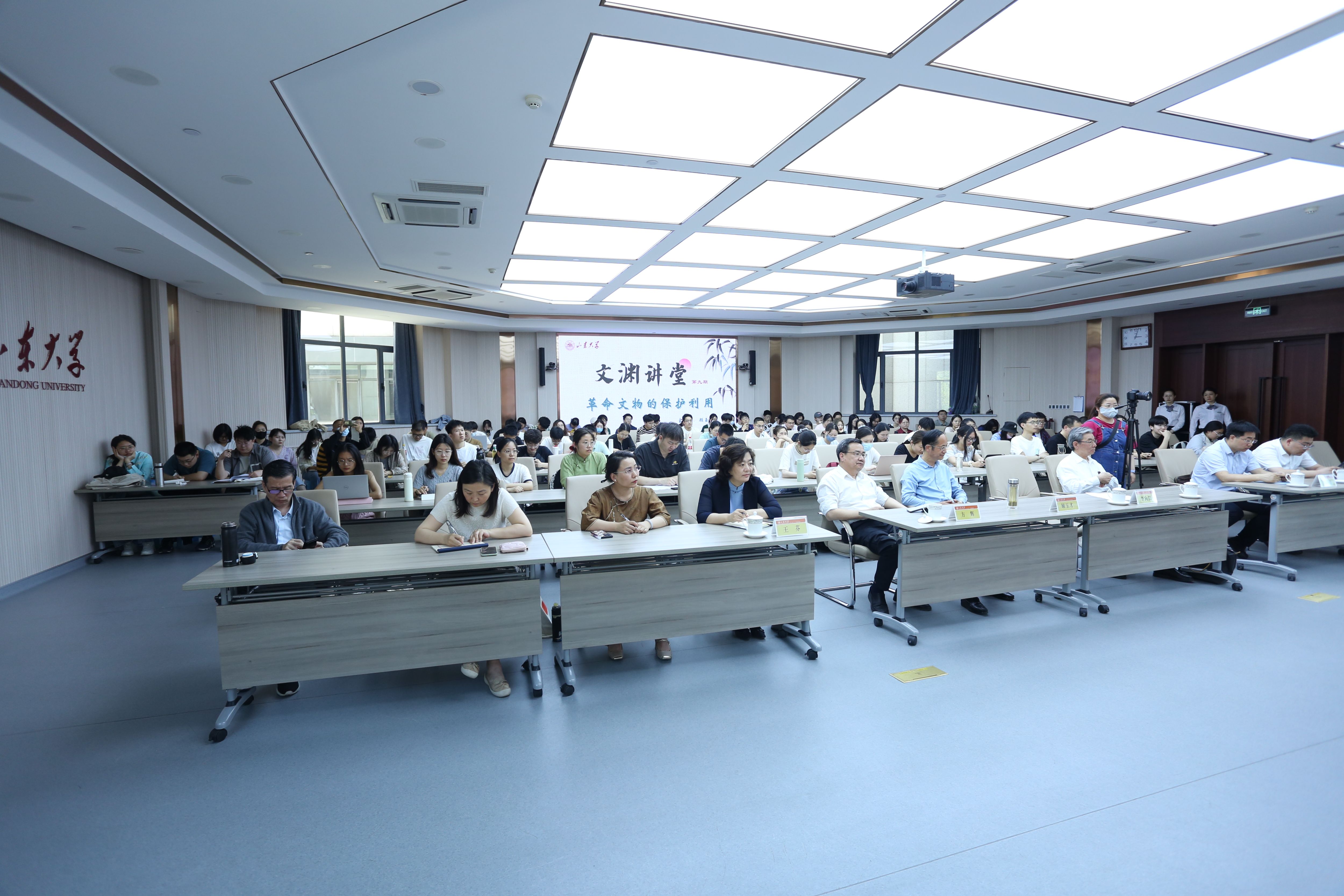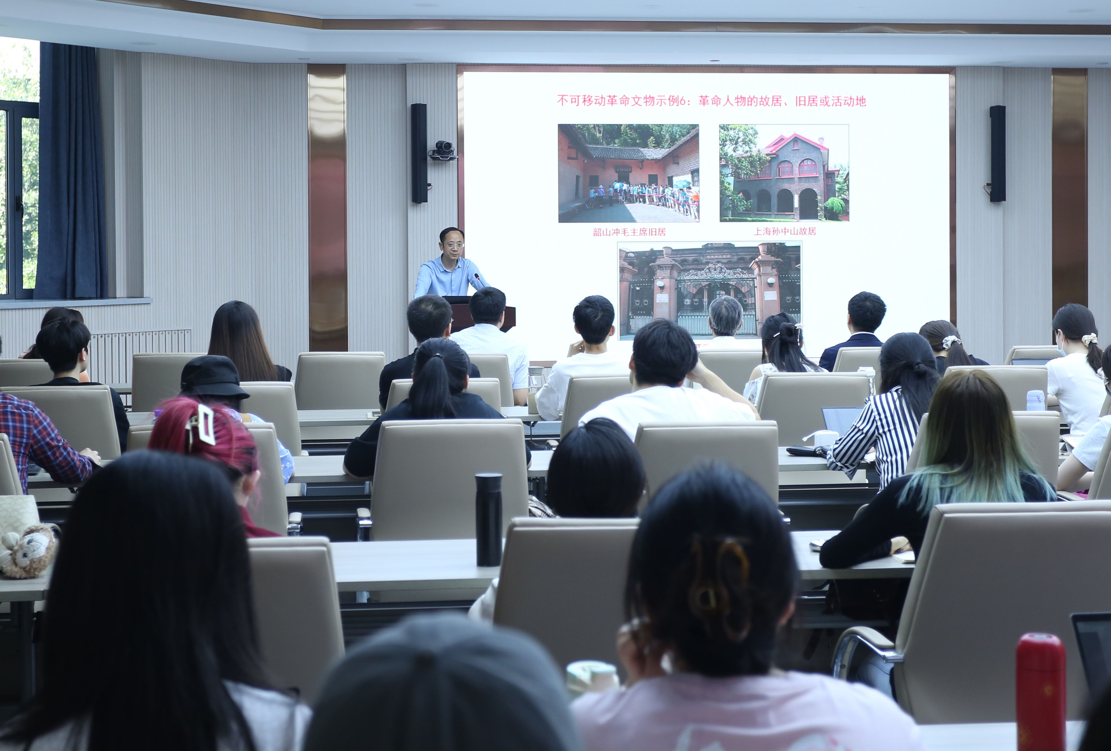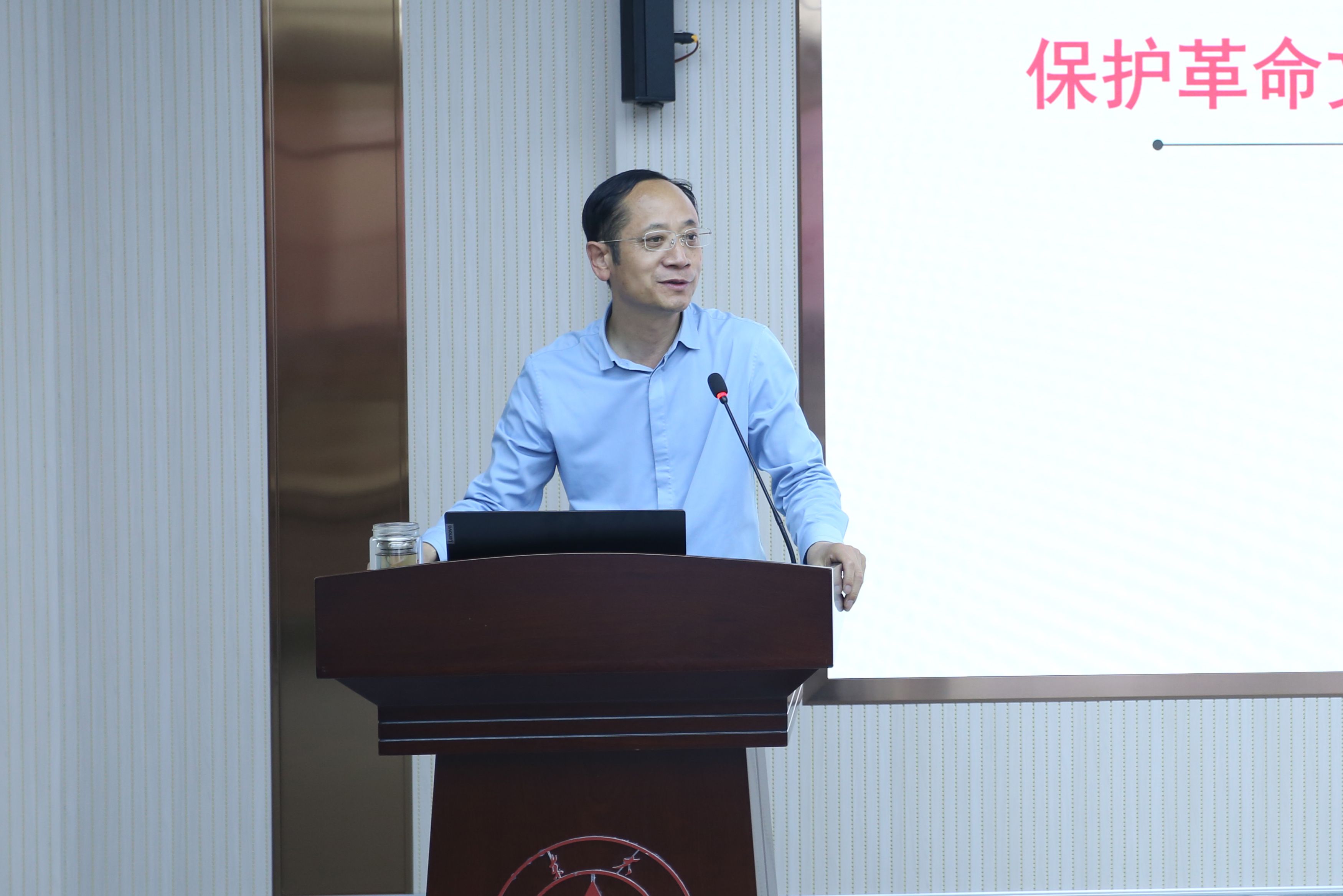 顧玉才首先對(duì)革命文物概念及其需要厘清的一些概念問(wèn)題展開說(shuō)明。他指出革命文物分為“可移動(dòng)”和“不可移動(dòng)”兩大類,強(qiáng)調(diào)我黨在很早便注意保護(hù)革命文物。講座結(jié)合《關(guān)于實(shí)施革命文物保護(hù)利用工程(2018-2022年)的意見》以及朱德的毛毯、“軍民合作、抗日勝利”新門神版畫等不同種類革命文物的豐富案例和故事,對(duì)革命文物的作用進(jìn)行了闡釋。隨后,通過(guò)梳理習(xí)近平總書記關(guān)于革命文物保護(hù)利用的重要論述和他在地方上所做的文物保護(hù)實(shí)踐,強(qiáng)調(diào)革命文物承載黨和人民英勇奮斗的光榮歷史,記載著中國(guó)革命的偉大歷程和感人事跡,是弘揚(yáng)革命傳統(tǒng)和革命文化、加強(qiáng)社會(huì)主義精神文明建設(shè)、激發(fā)愛國(guó)熱情、振奮民族精神的生動(dòng)教材。每件革命文物都十分珍貴、每個(gè)場(chǎng)景都耐人尋味,要經(jīng)?;貞?、深入思索,從中解讀中國(guó)共產(chǎn)黨的初心與使命。