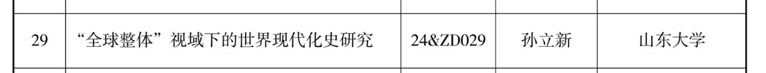 近日,全國哲學(xué)社會科學(xué)工作辦公室公布2024年國家社科基金重大項目立項名單,我院孫立新教授主持的“‘全球整體’視域下的世界現(xiàn)代化史研究”與張新剛教授主持的“世界歷史上‘疆域’的觀念與治理體系研究”成功獲批立項,實現(xiàn)近年我院國家社科基金重大項目立項的新突破。