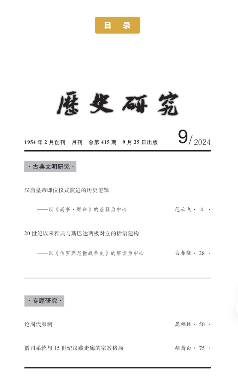 《歷史研究》為中國(guó)歷史研究院院刊,創(chuàng)刊于1954年,是黨中央決定創(chuàng)辦的全國(guó)性史學(xué)刊物,是史學(xué)界的一面旗幟,刊登我國(guó)史學(xué)界最高水平的研究成果,被公認(rèn)為歷史學(xué)頂級(jí)刊物。