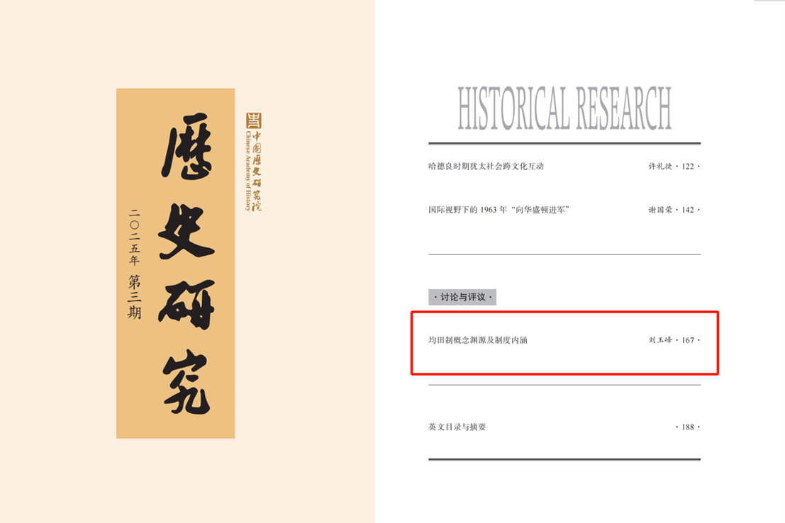 歷史學(xué)院劉玉峰教授在《歷史研究》2025年第3期發(fā)表研究論文《均田制概念淵源及制度內(nèi)涵》。