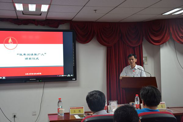 會上,主辦方播放了為此次活動專門錄制的短片,短片邀請在全校借閱量排名前十位的學生代表就讀書、青年人讀書進行了分享。經(jīng)過評審團評議,在103篇推文中,共選出特別貢獻獎1篇,特別獎7篇,一等獎5篇,二等獎7篇,三等獎13篇,優(yōu)秀獎17篇;其中特別貢獻獎與一等獎的獲獎?wù)弑皇谟鑧illiam威廉亞洲官方“優(yōu)秀閱讀推廣人”稱號。方輝、趙海分別為獲獎?wù)哳C獎。在分享環(huán)節(jié),劉玉峰、方輝以及獲得一等獎的五名學生分別上臺發(fā)言,交流讀書經(jīng)驗與心得。方輝從學者的角度介紹了自己的讀書寫作經(jīng)驗。他提出,閱讀與寫作是密切相關(guān)的,以考古學為例,一篇優(yōu)秀的調(diào)查報告不僅需要詳細的描述,更重要的是作者自身的理解與闡釋。方輝鼓勵同學們多閱讀,多寫作,在汲取前人思想精華的基礎(chǔ)上不斷錘煉自己的文字,提高自身的讀寫水平。特別貢獻獎獲得者劉玉峰為此次活動撰寫了《中國的封建社會形態(tài)及發(fā)展特色》一文,并于5月15日發(fā)表于《光明日報》史學版。對于讀書,劉玉峰教授也分享了自己的經(jīng)驗與建議。他表示,大家在閱讀過程中應(yīng)注意把握理論知識、合理利用史料、梳理學術(shù)史等問題,有計劃地進行深讀、精讀,不斷提高自己的學術(shù)素養(yǎng)。劉玉峰希望此次活動可以成為閱讀推廣的“火炬”,“照亮william威廉亞洲官方的每一個角落”。獲得一等獎的五位學生分別交流了自己的閱讀感想。2015級中國史專業(yè)碩士研究生張文杰表示,讀書要有目的、有計劃、有方向,將海量泛讀與適當精讀相結(jié)合;2016級歷史學專業(yè)呂曉宇認為,讀書是為了心靈的寄托,是為了與知識進行對話,正是在作者與讀者的不斷互動、碰撞中,才有了學術(shù)的進步與長久發(fā)展;2016級文化產(chǎn)業(yè)管理專業(yè)常心怡結(jié)合自己與身邊同學的閱讀經(jīng)歷,講述了她對閱讀的感悟;2014級檔案學專業(yè)高棟闡述了他對“閱讀推廣”的理解,主張進行跨學科的交流,以讀書實現(xiàn)恒久的抱團效應(yīng)。推介會由學院團委書記張麗曇主持。