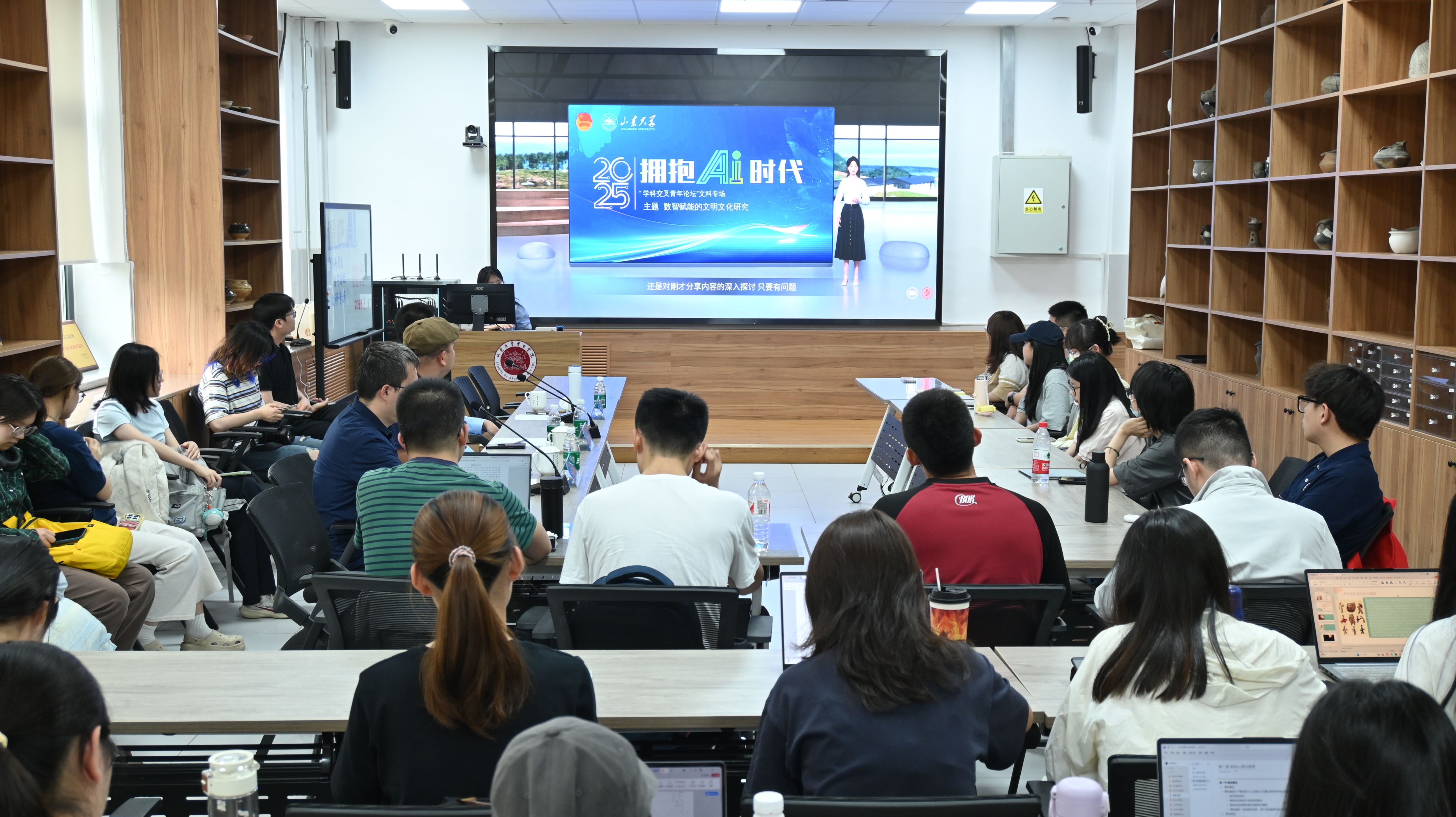 論壇以“數(shù)智賦能的文明文化研究”為主題,邀請歷史學(xué)院胡煒權(quán)老師、考古學(xué)院付龍騰老師、哲學(xué)與社會發(fā)展學(xué)院顏峻老師進(jìn)行現(xiàn)場分享與互動討論。“小谷?!保ˋI虛擬人物)主持活動。