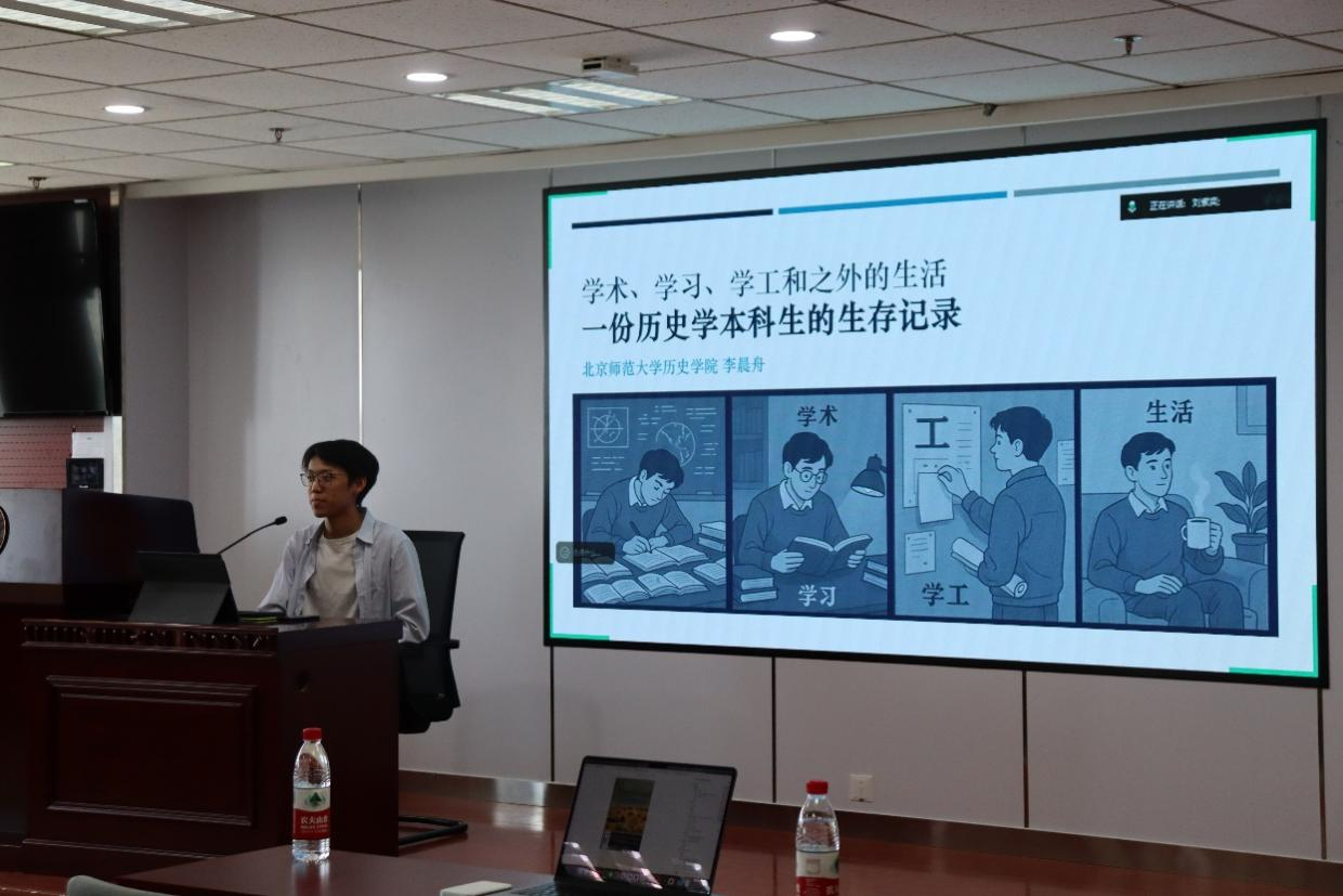 朋輩導師分享環(huán)節(jié),北京師范大學學生代表李晨舟同學以“學術、學習、學工和之外的生活:一個歷史學本科生的生存記錄”為題,從學術、學習、學生工作和生活四個維度展開分享。他提出,本科生投身學術需以興趣為基石,在廣泛積累中尋找方向,同時強調(diào)學術研究需具備自驅(qū)力與開放視野。在方法論層面,他推薦使用文獻管理工具和豆瓣書評拓展閱讀資源,并建議跨校選課、構建學術交流圈以突破信息壁壘。此外,他還結合課堂學習與考試策略,指出需優(yōu)化復習材料以提升效率,提供了寶貴的期末復習方法建議。學生工作方面,他分享了學工的意義和選擇方法,但同時提出要適時進退合理安排時間。生活方面鼓勵大家尋找多元生活方式,打造自己的核心競爭力。