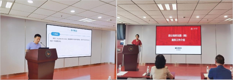 國際事務(wù)部出國(境)事務(wù)辦公室工作人員詳細解讀了學(xué)校關(guān)于因公臨時出國(境)業(yè)務(wù)的管理辦法,介紹了業(yè)務(wù)申辦過程中個人信息、團組信息、出訪信息和經(jīng)費信息的填報規(guī)范,對因公簽證材料準(zhǔn)備、出訪國家簽證政策變化以及申請簽證過程中應(yīng)注意事項進行了重點解讀。
